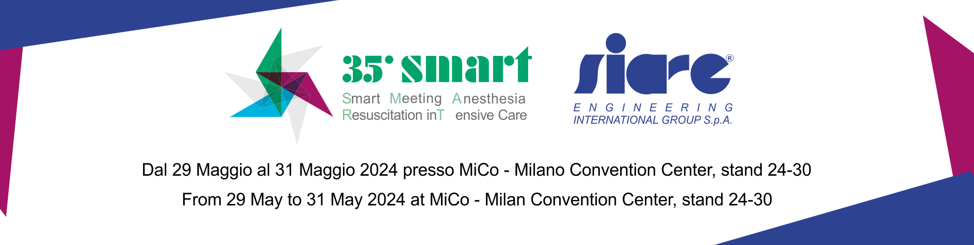 Dal 29 al 31 maggio 2024, Siare Engineering International Group vi aspetta a MiCo – Milano Convention Center per la 35° edizione dello SMART – Smart Meeting Anesthesia Resuscitation Intensive Care.